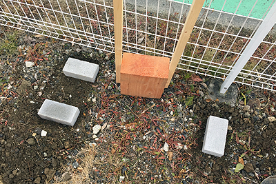 まずは、プランターの土台として、コンクリートレンガを並べました。