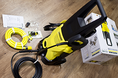 ケルヒャーの公式サイトをみると、家庭用の高圧洗浄機だけでもかなりの種類がありましたが、今回はエントリークラスの「K2.400」というモデルを選びました。