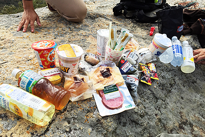 出発前に途中のコンビニで、カップ麺やおにぎりやスイーツ・お菓子を色々と買ってきました!