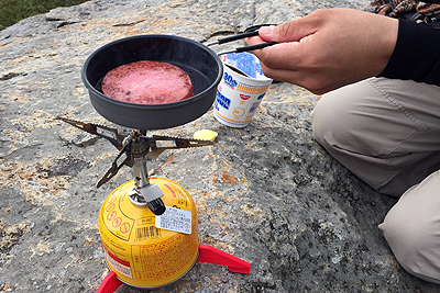 それにしても、このハムが最高に美味しかったです!コンビニで買ったハムを焼いただけなのに、こんなに美味しいとは!これぞ山頂マジック!?